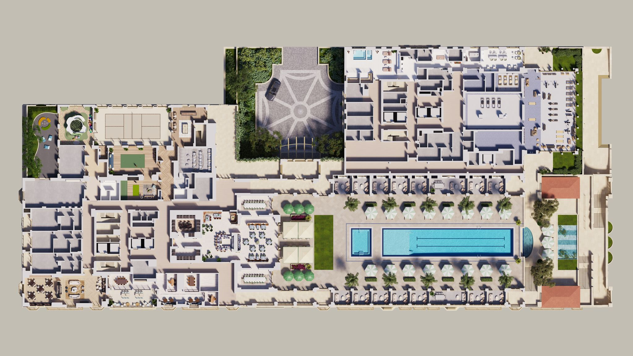 From comprehensive sports, spa, fitness, and children’s recreation facilities to beautifully designed social spaces, South Flagler House offers residents a rich array of on-site amenities. A lakefront pool with private cabanas creates a serene setting for outdoor relaxation, while indoors, a signature restaurant and multiple social spaces foster connection and ease. Executive conference rooms support business needs, while a state-of-the-art fitness center, pickleball court, sports simulator lounge, and Pilates and yoga studio encourage active living.